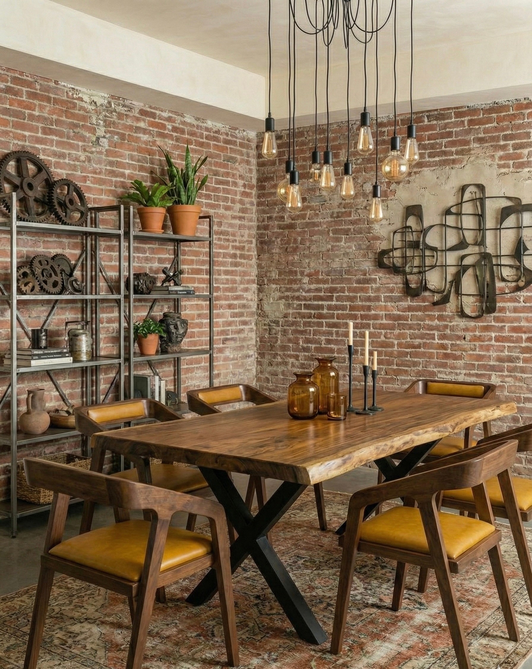 طاولة طعام كبيرة من الخشب الصلب بحافة حية - خشب سامان مع لمسة نهائية من البولي يوريثين، أرجل معدنية سوداء - مثالية للمنزل أو المطعم