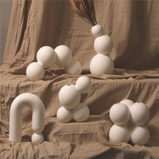 White Circular Ceramic Vase Stylish Table Centerpiece for Home Decor.