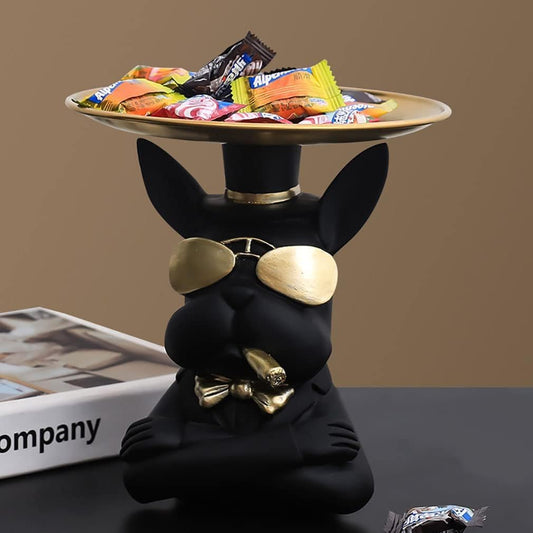Handmade Resin Bulldog Statue Tray, Creative Storage Solution with a Touch of Nordic Elegance.