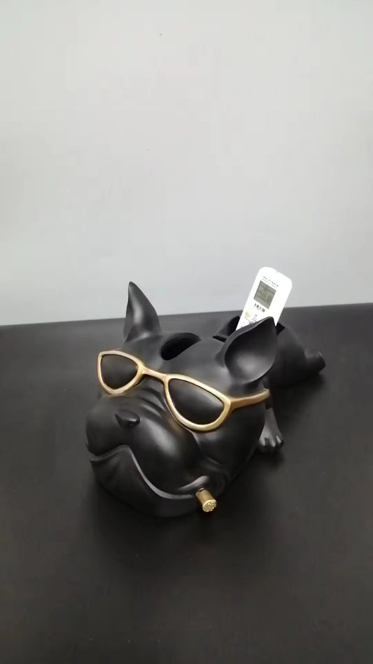 French Bulldog Sculpture with Stainless Steel Tray for Home Storage