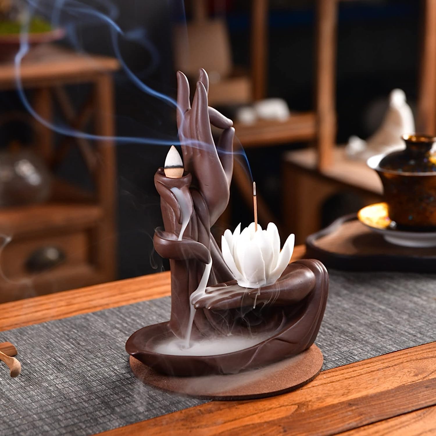 - Premium Material This backflow incense holder is handmade by folk craftsmen, very delicate workmanship. The perfect craftsmanship. Very suitable for collection. Includes 1 lotus Red Stonware incense holder