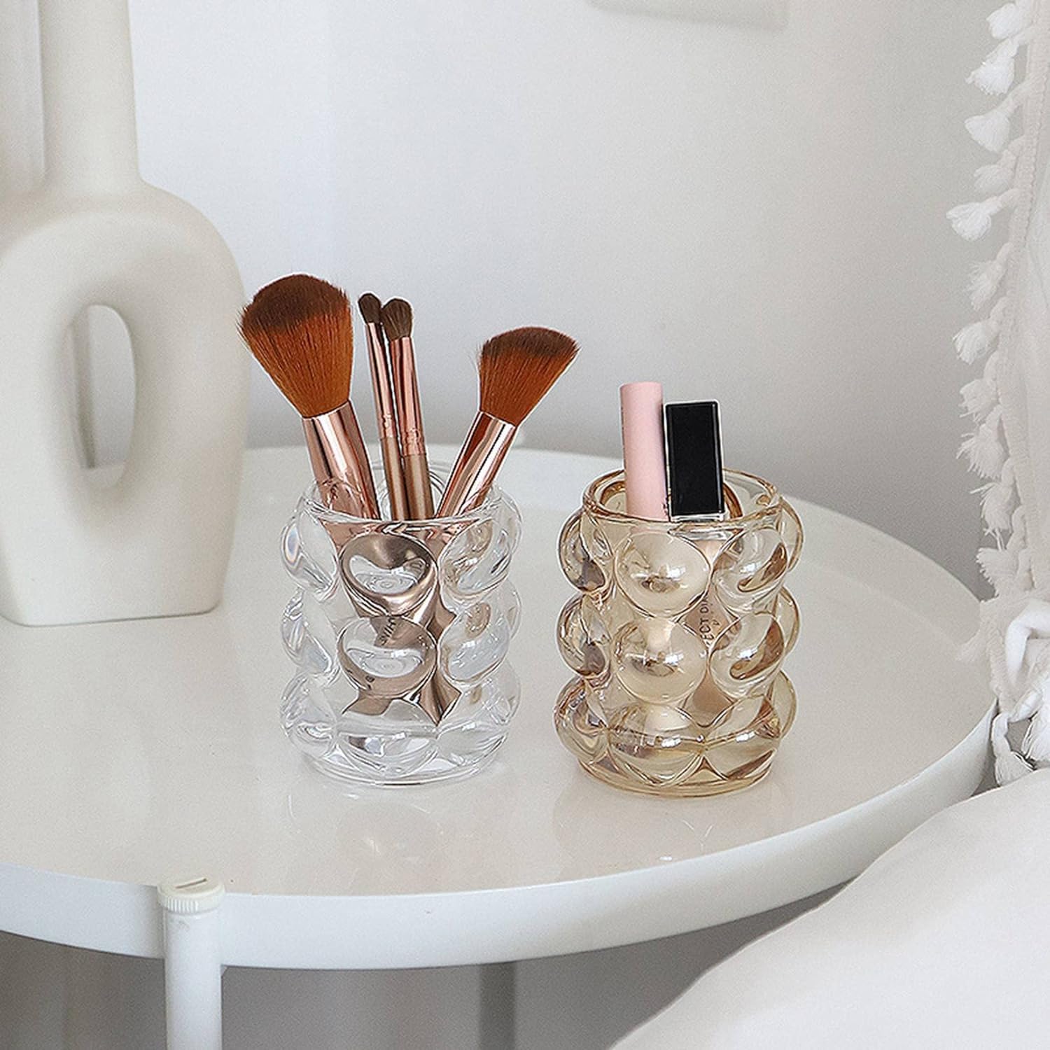Amber Glass Organizer; Stylish Storage Solution for Office, Home, and Makeup Essentials.