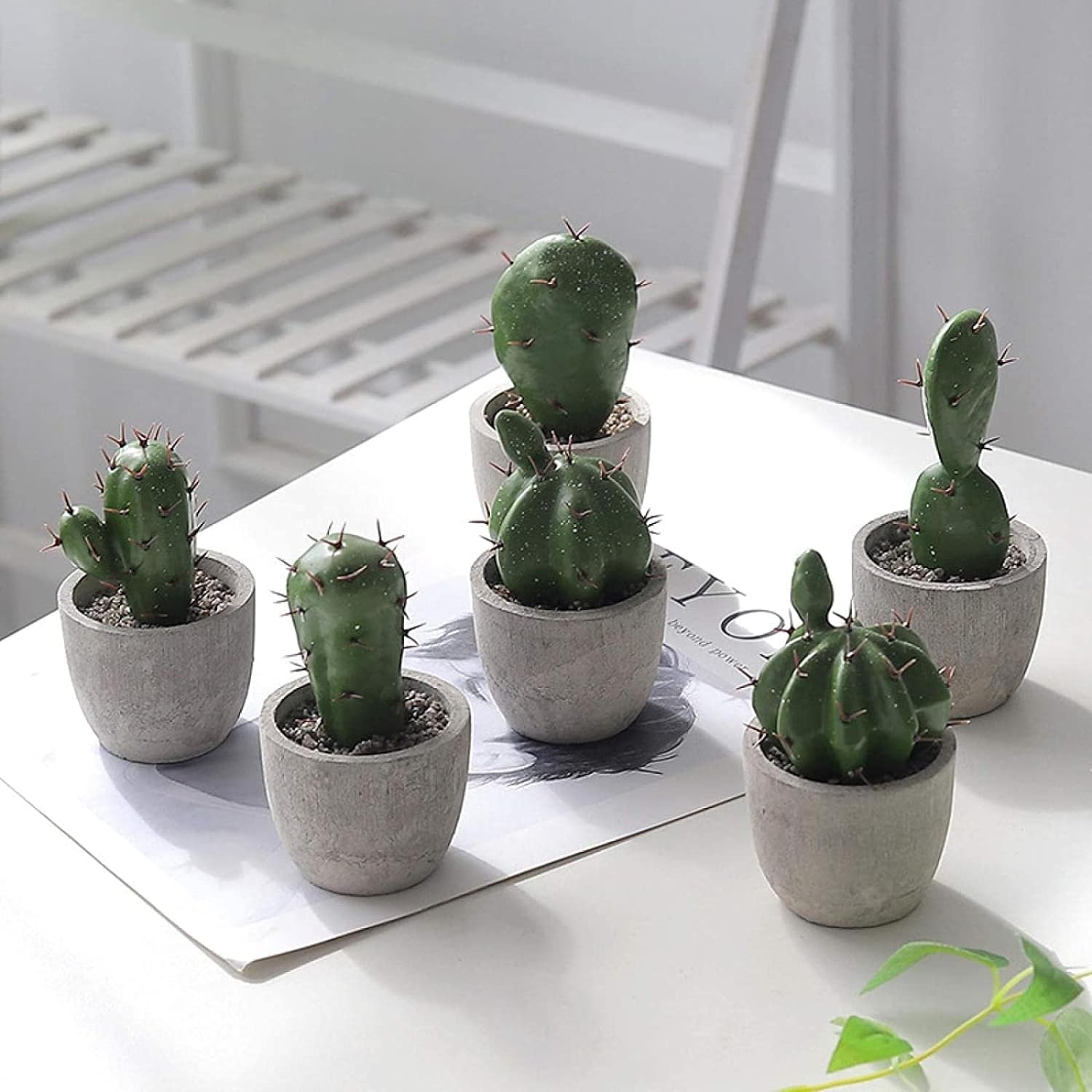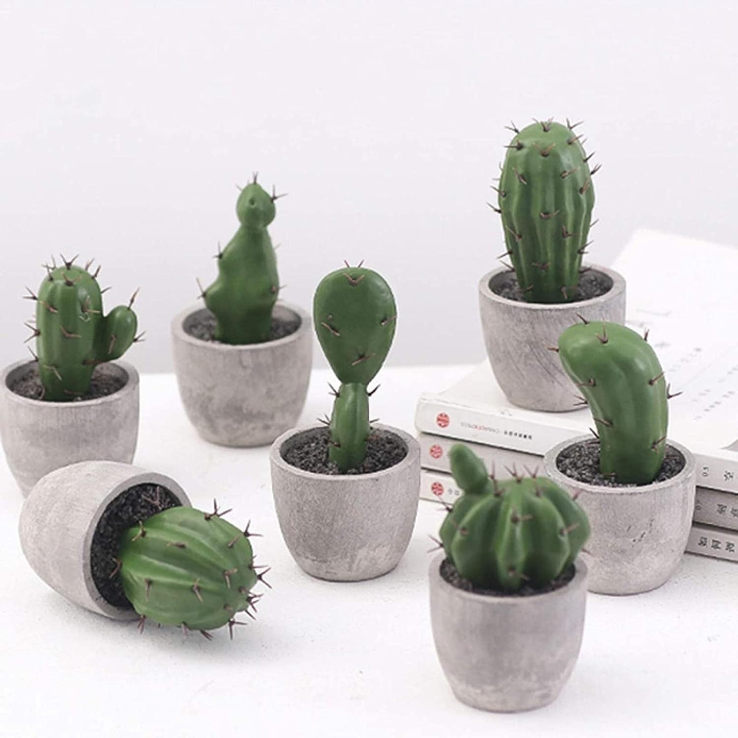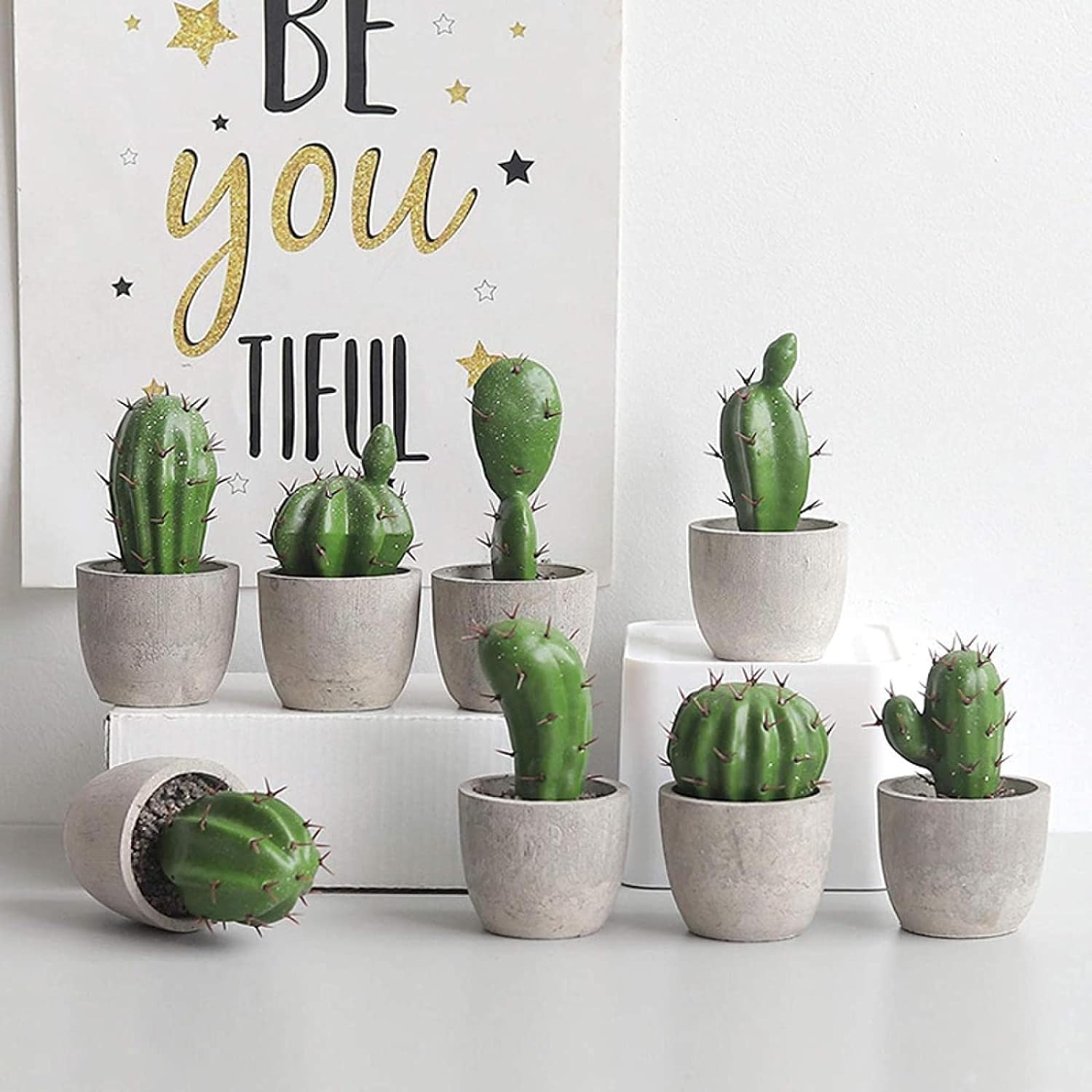 Cactus statue, Artificial Potted Cactus Plants with Ceramic Pot, Nordic Inspired Desk Decor.