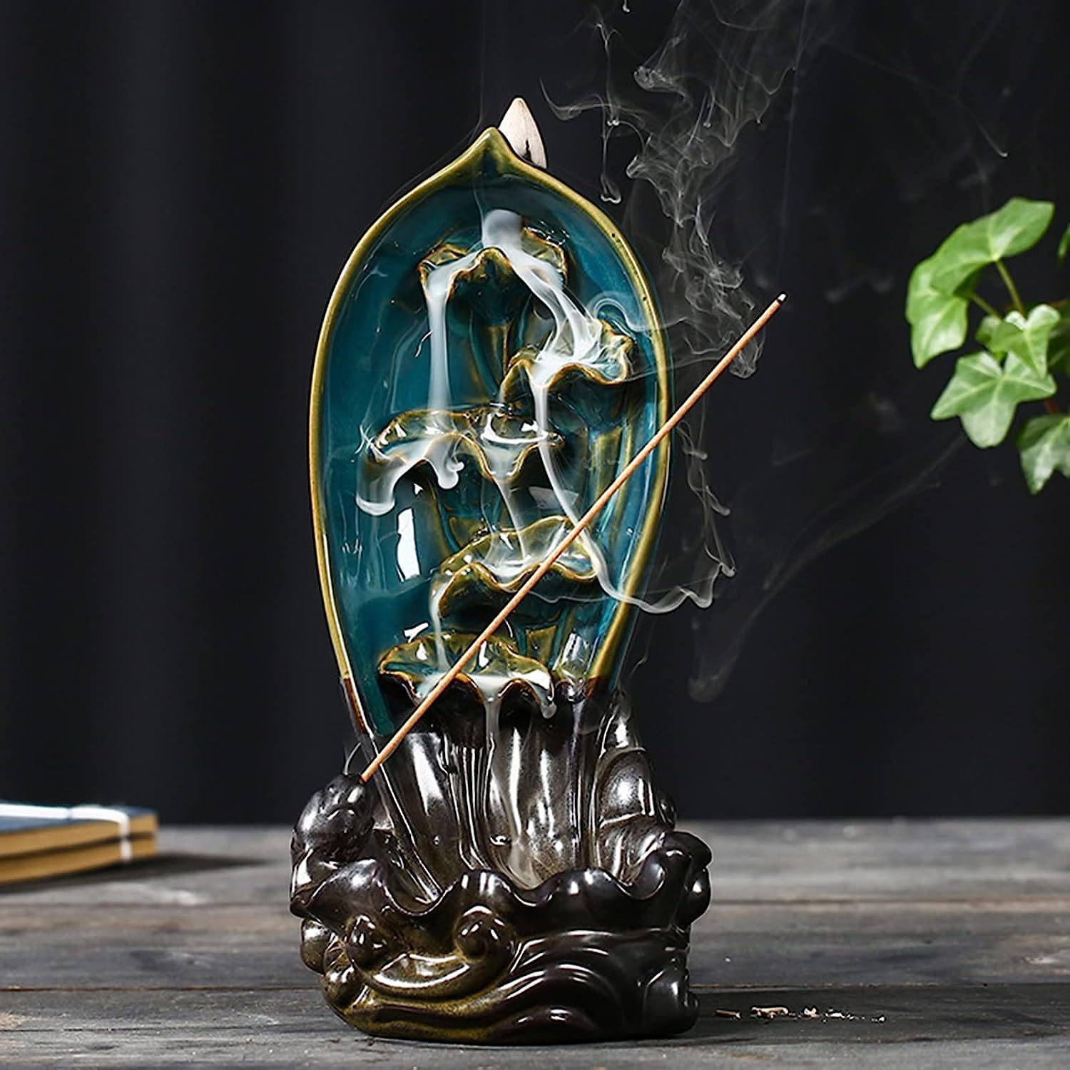 Perfect for use with an incense cone, the waterfall incense burner helps to freshen the air, relieve anxiety and fatigue whilst enhancing your sleeping quality. What the incense burner can offer you is that mysterious and magical scene that smoke slowly flow into the pool like a waterfall and backflow smoke surrounds the incense burner after igniting incense for a while. Made of ceramic, it is heat-resistant and sturdy. The incense burner is available in four different styles. It is suitable for home, office, tea house, meditation, yoga etc.