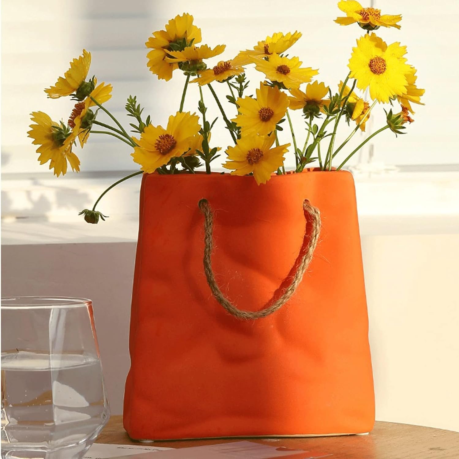 Ceramic shopping bag Vase, Elegant Decorative Piece for Dried Flowers and Table Arrangements.