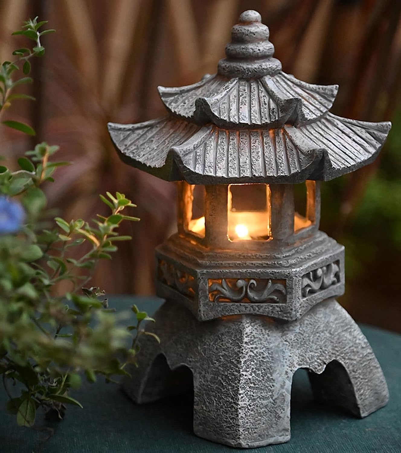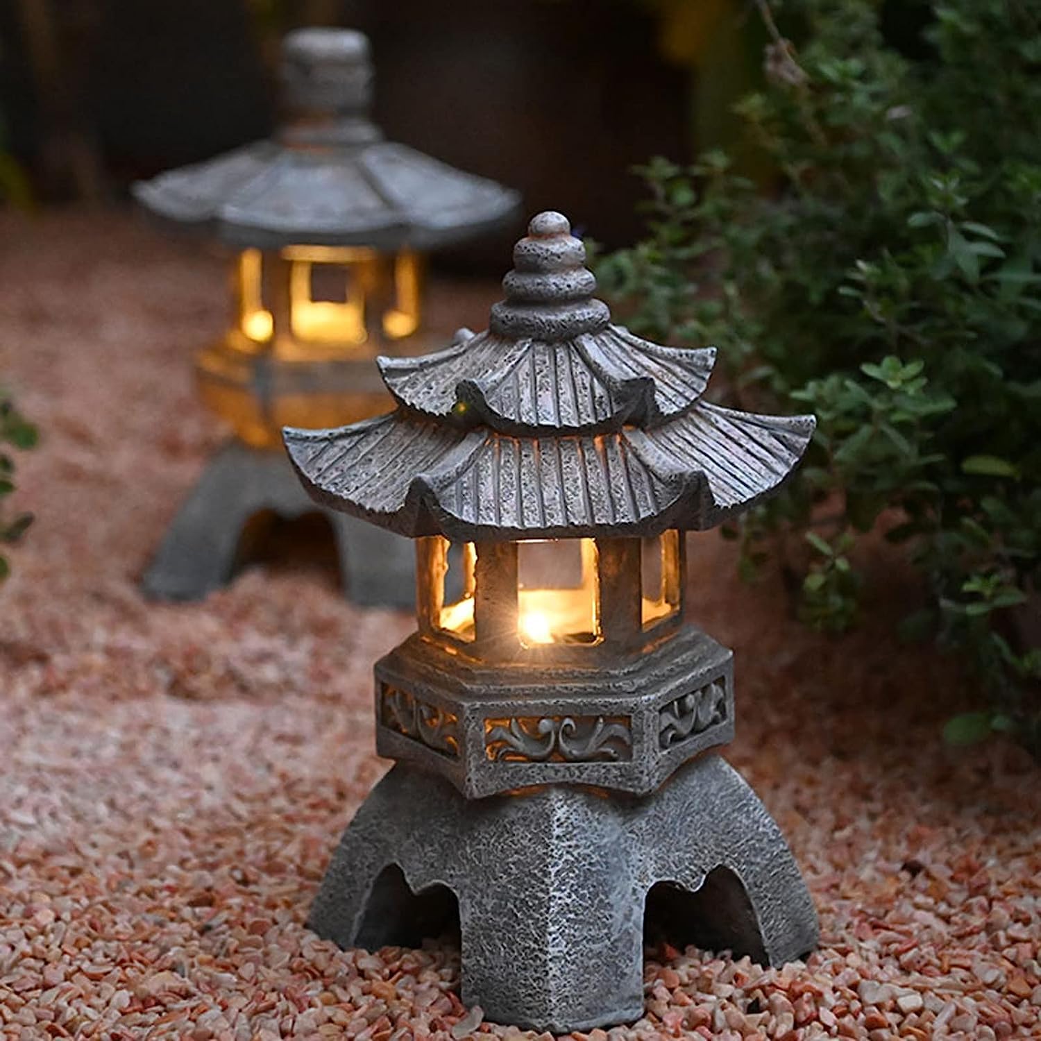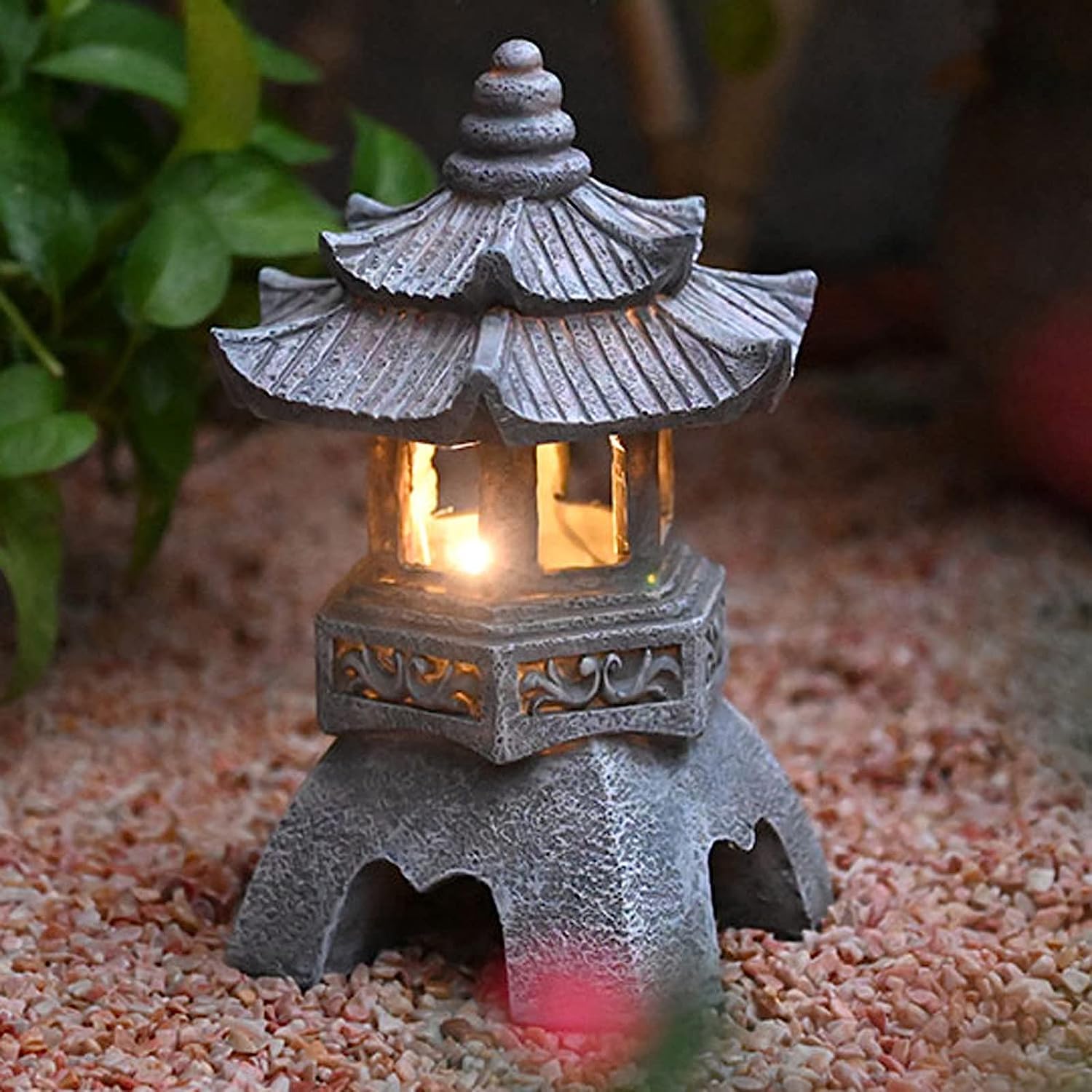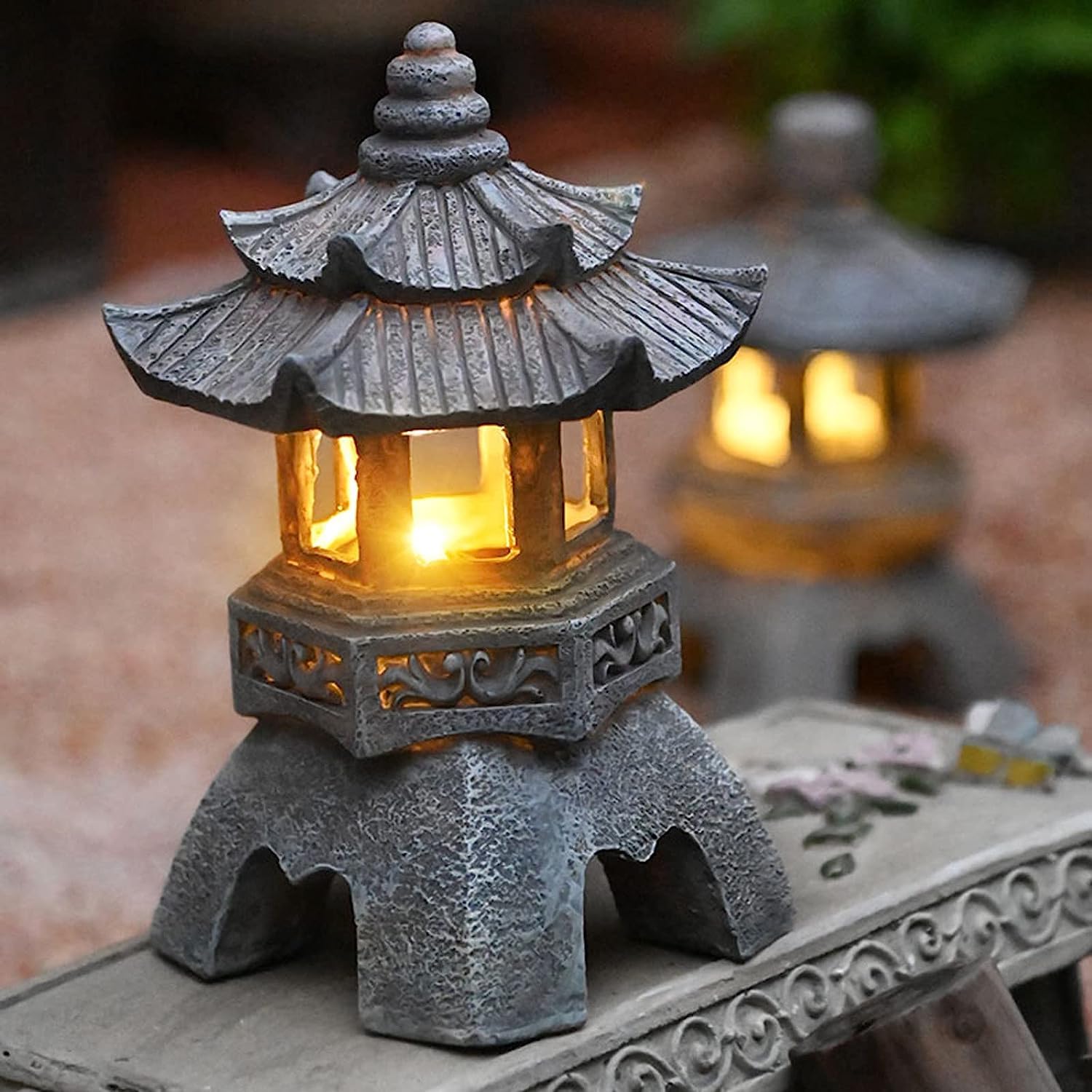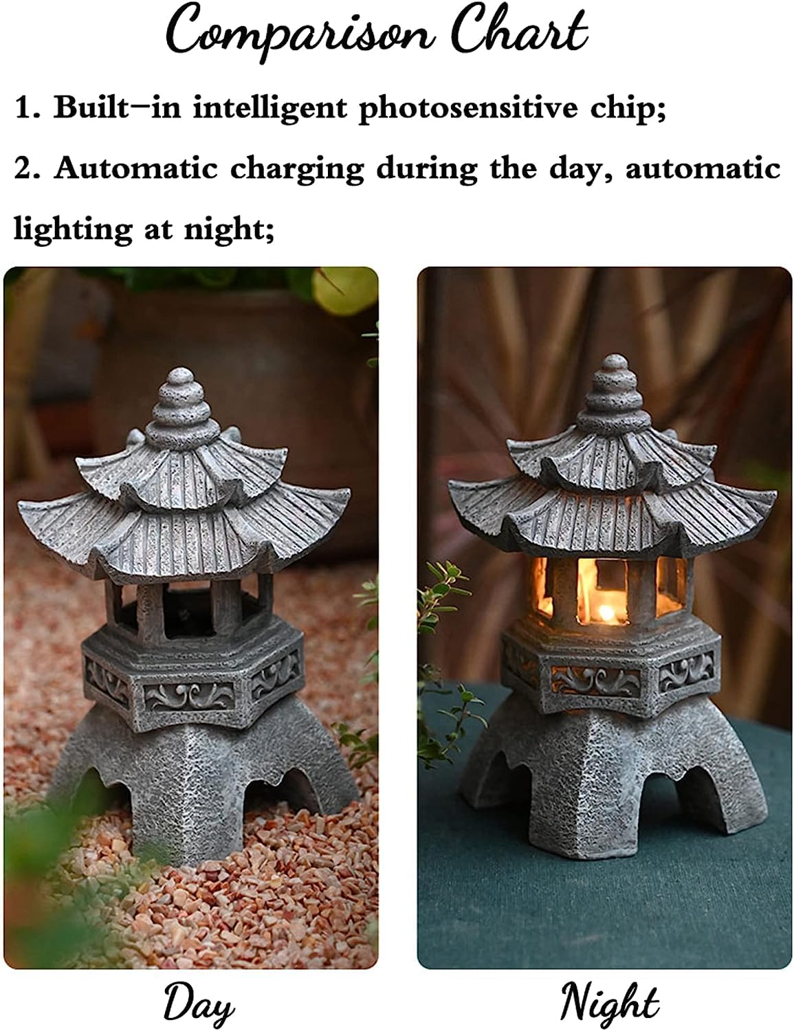 - [Peaceful Zen Statue] : Solar Light,Create tranquil harmony and zen to your home's garden spring decoration and place this solar pagoda light for landscaping in your outdoor arrays. This lantern pagoda statue will create a magic Zen oasis in your outdoor Oriental garden.
