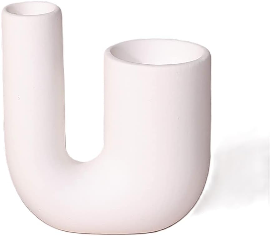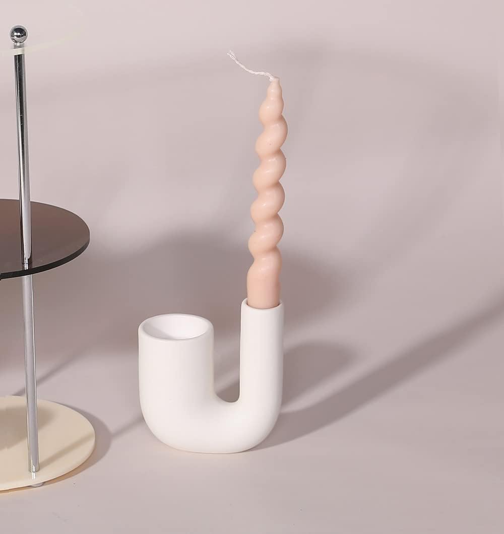 Modern Candle Holder, Aesthetic Candlestick Holders, White Ceramic Taper Candle Holder, Decorative Candle Sticks Holder Decor For Table Centerpiece Fireplace U shape of this taper candle holder have 2 holes