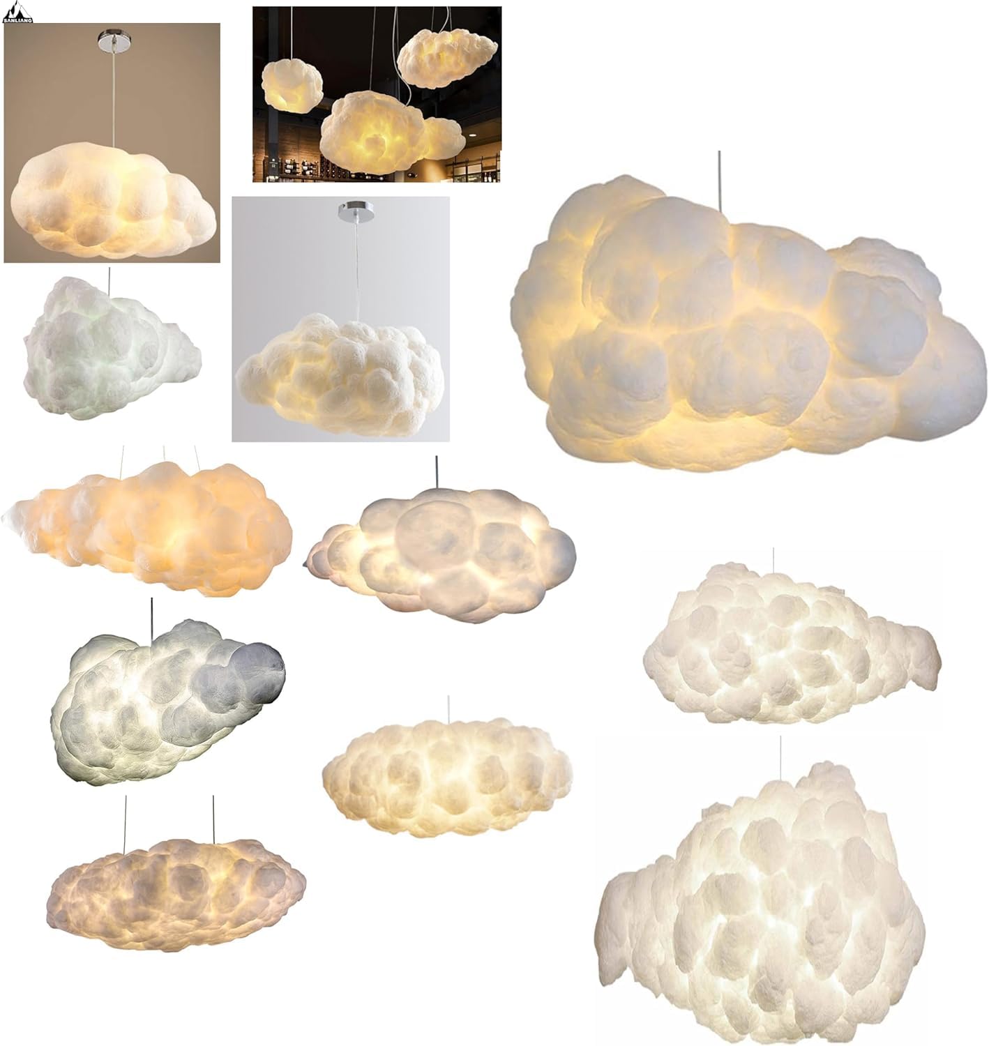 - 【Hanging Lamp Style】: A Nice,Low-cost,And Functional Pendant Light Fixture To Meet Your Basic Lighting Needs.This Cloud Cotton Lampshade Pendant Hanging Lamp Features A Metal Base.Perfect For Office,Kids Room,Clothing Store,Or College dorm