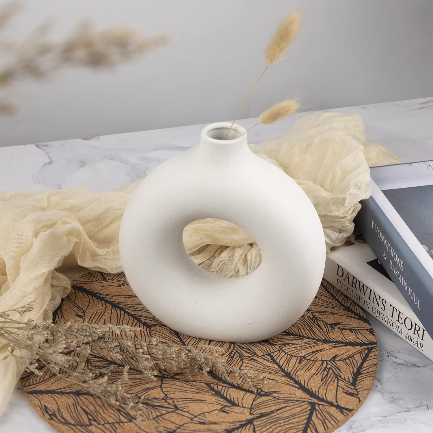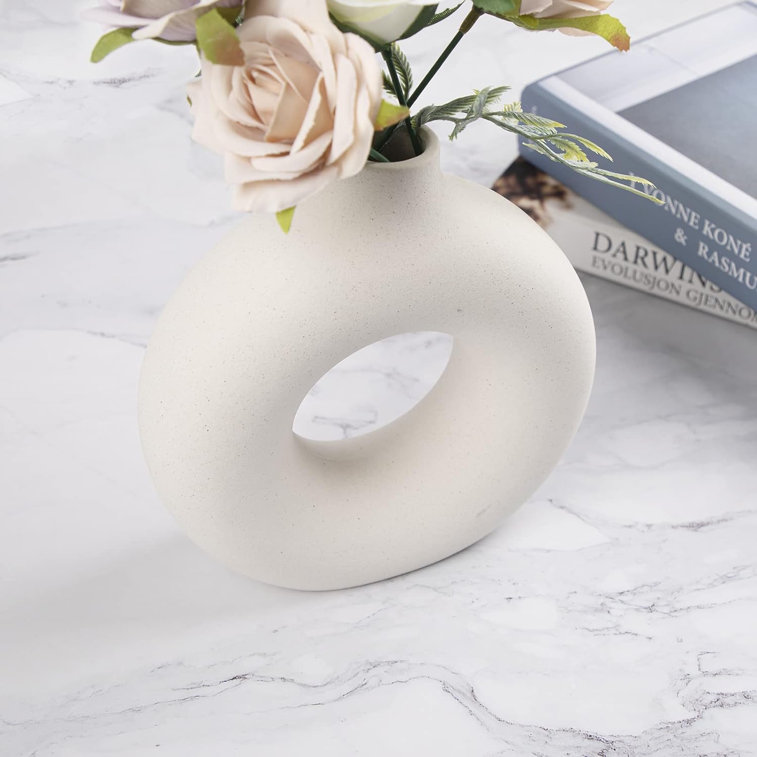 - Unique hollowed vase – The circular White Circular Ceramic donuts vase design makes the ceramic flower vases unique and stylish; it can act as a great decor piece everywhere in your home, living room, bedrooms, table, mantel, bookshelf, and windows.
