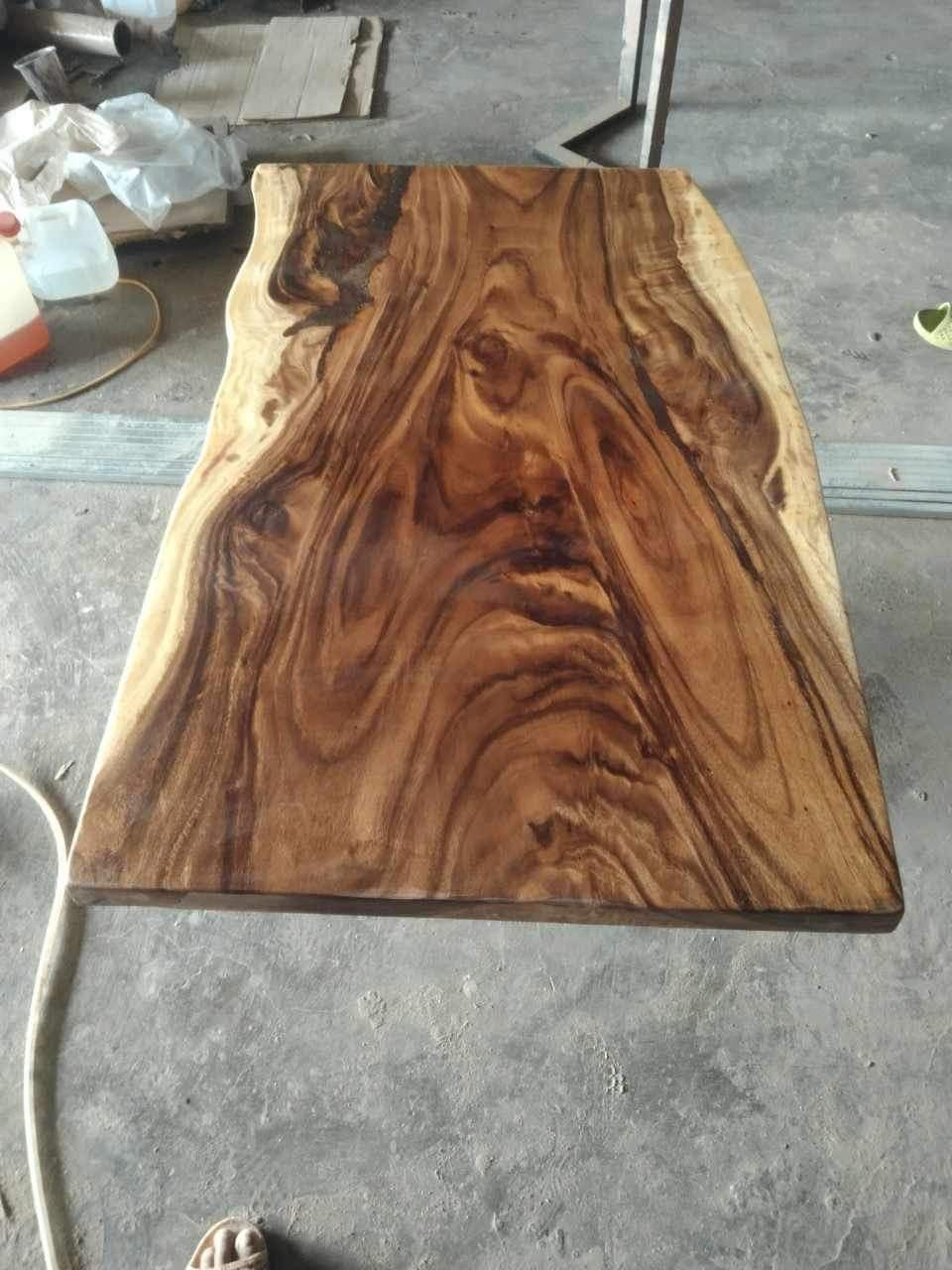 Elevate your dining experience with our stunning Large Live Edge Wood Solid Table, expertly handcrafted from luxurious Saman wood. Boasting a generously sized slab measuring 160x80x5 or 120*60*4 cm, this table offers ample space for family gatherings, dinner parties, or commercial use in restaurants. The live edge design adds a touch of natural beauty and uniqueness to your space, as each piece showcases the distinct grain patterns and character of the wood. Protected with a durable PU final coat finish, this table is resistant to scratches, stains, and moisture, ensuring long-lasting beauty and functionality. The sleek black powder-coated metal legs provide sturdy support while complementing the modern aesthetic of the table. Whether used in a home dining room or a commercial restaurant setting, this versatile piece effortlessly blends style with functionality. Experience the timeless elegance and exceptional craftsmanship of our Large Live Edge Wood Solid Table, designed to enhance any interior space with its natural charm and enduring quality.