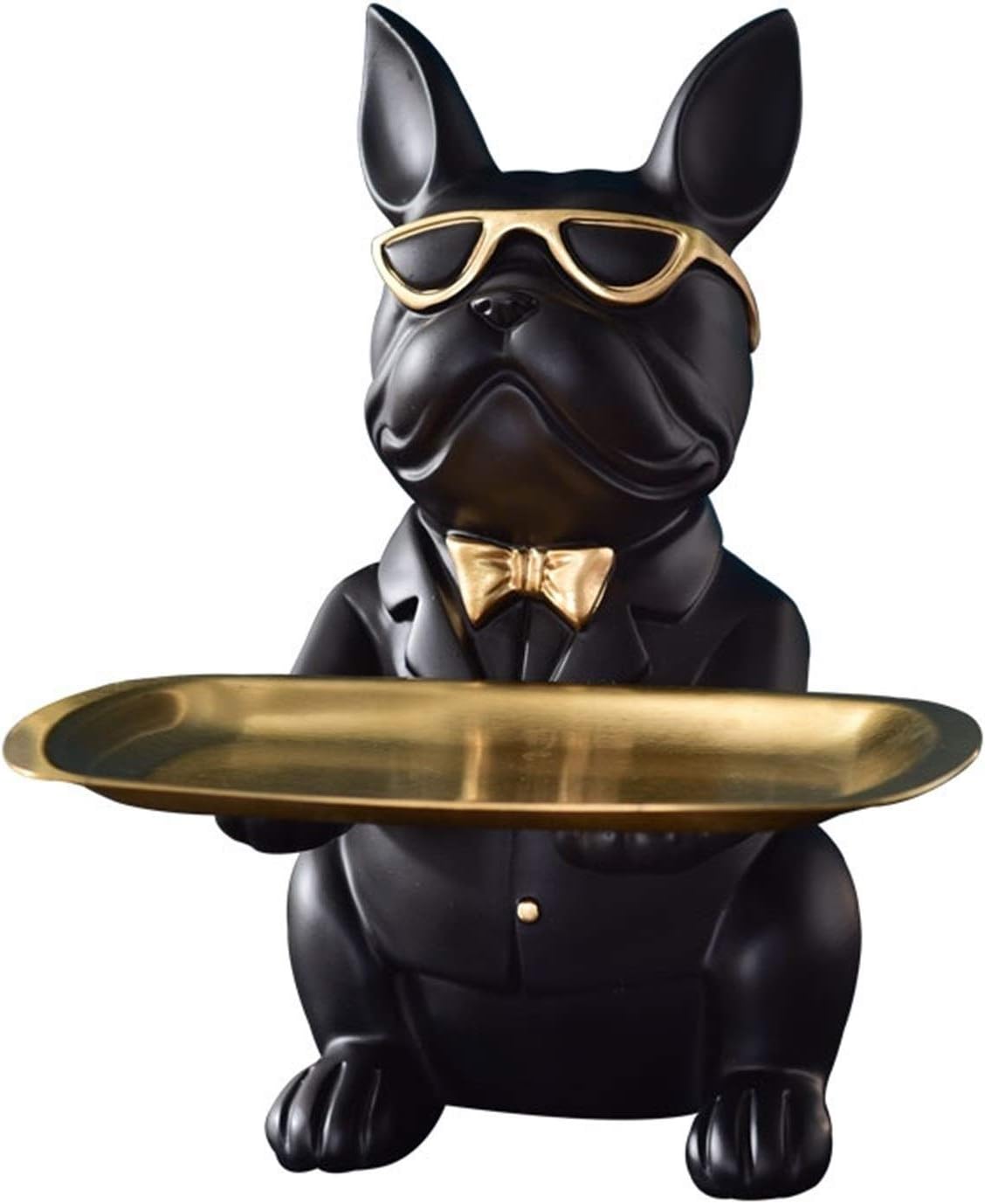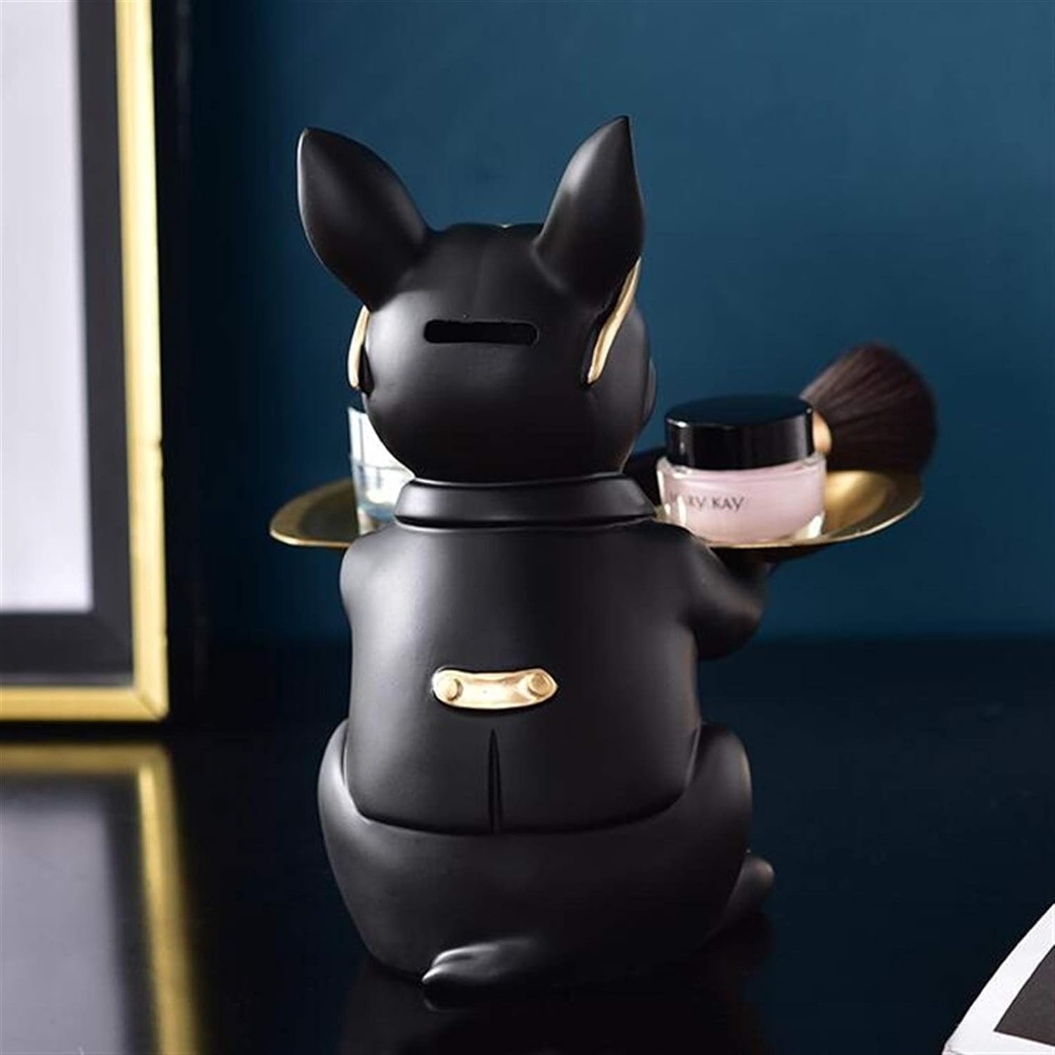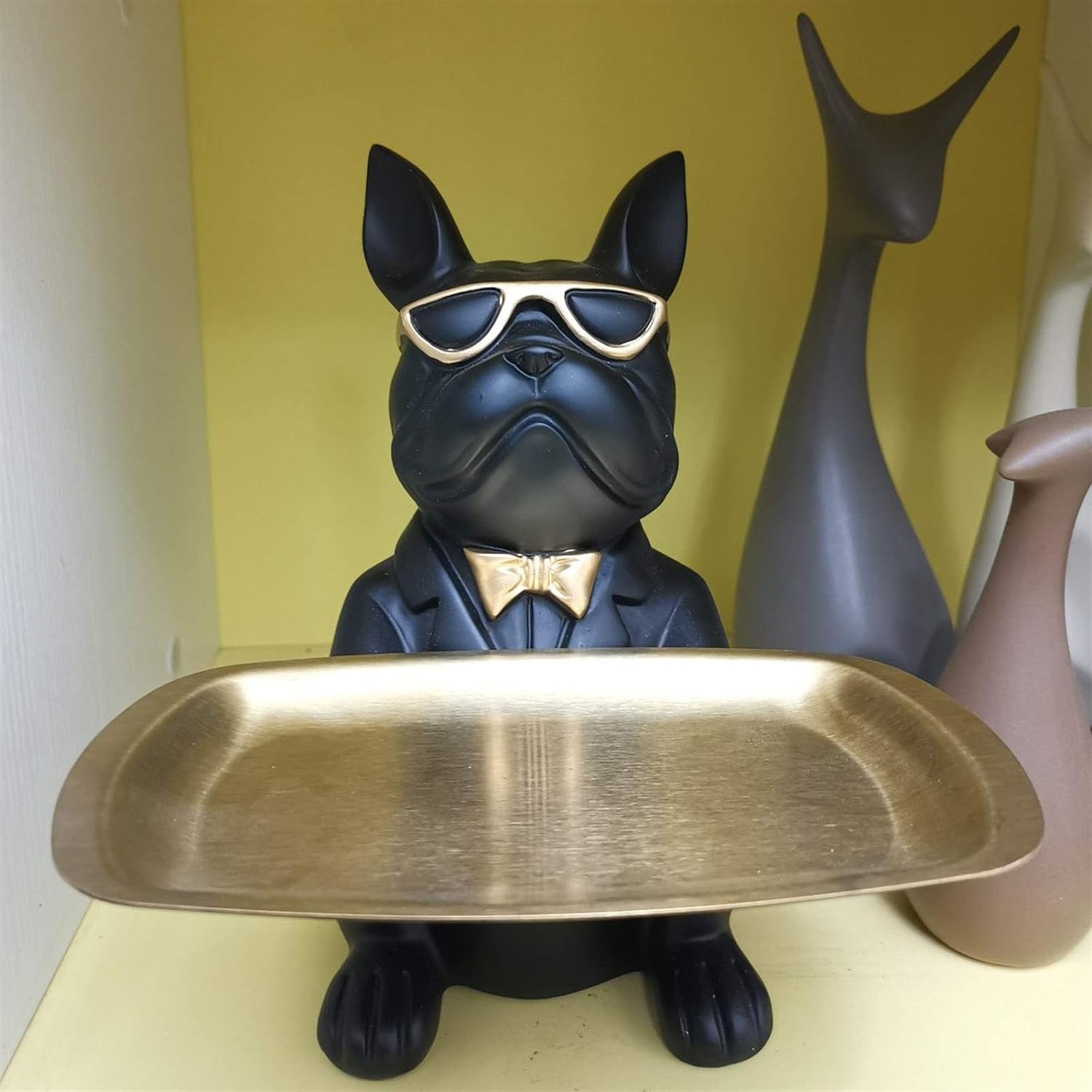 French Bulldog Sculpture with Stainless Steel Tray for Home Storage