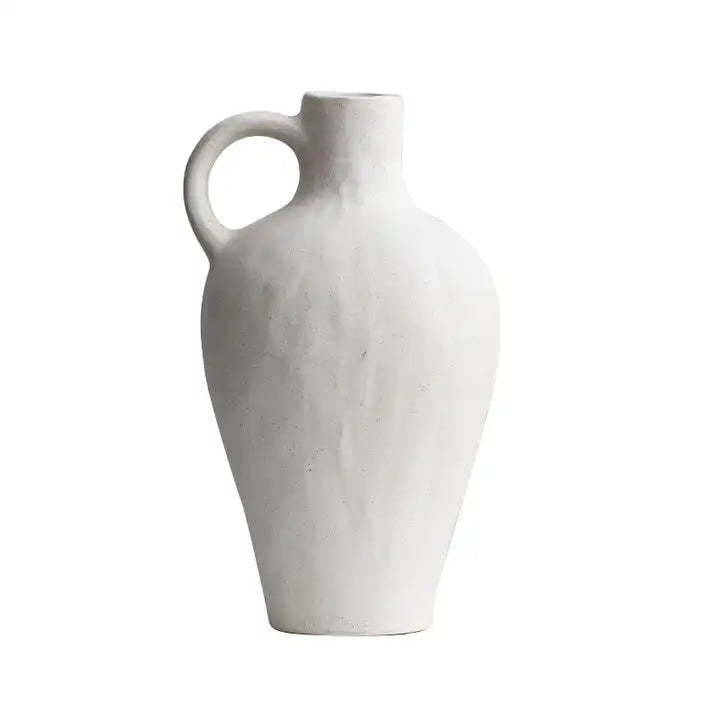 Handcrafted One-Ear Solid White Matte Nordic Vase: Modern Ins Style Design.