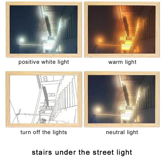 1. [Lighting Art] Incorporating built-in LED light, an eye-friendly acrylic lampshade, and a high-quality wooden photo frame. In its dormant state, it presents a simple black and white line painting. However, when illuminated, the decor light astonishes with warm radiance, bringing the painting to life. The captivating image fosters a cozy atmosphere conducive to relaxation.