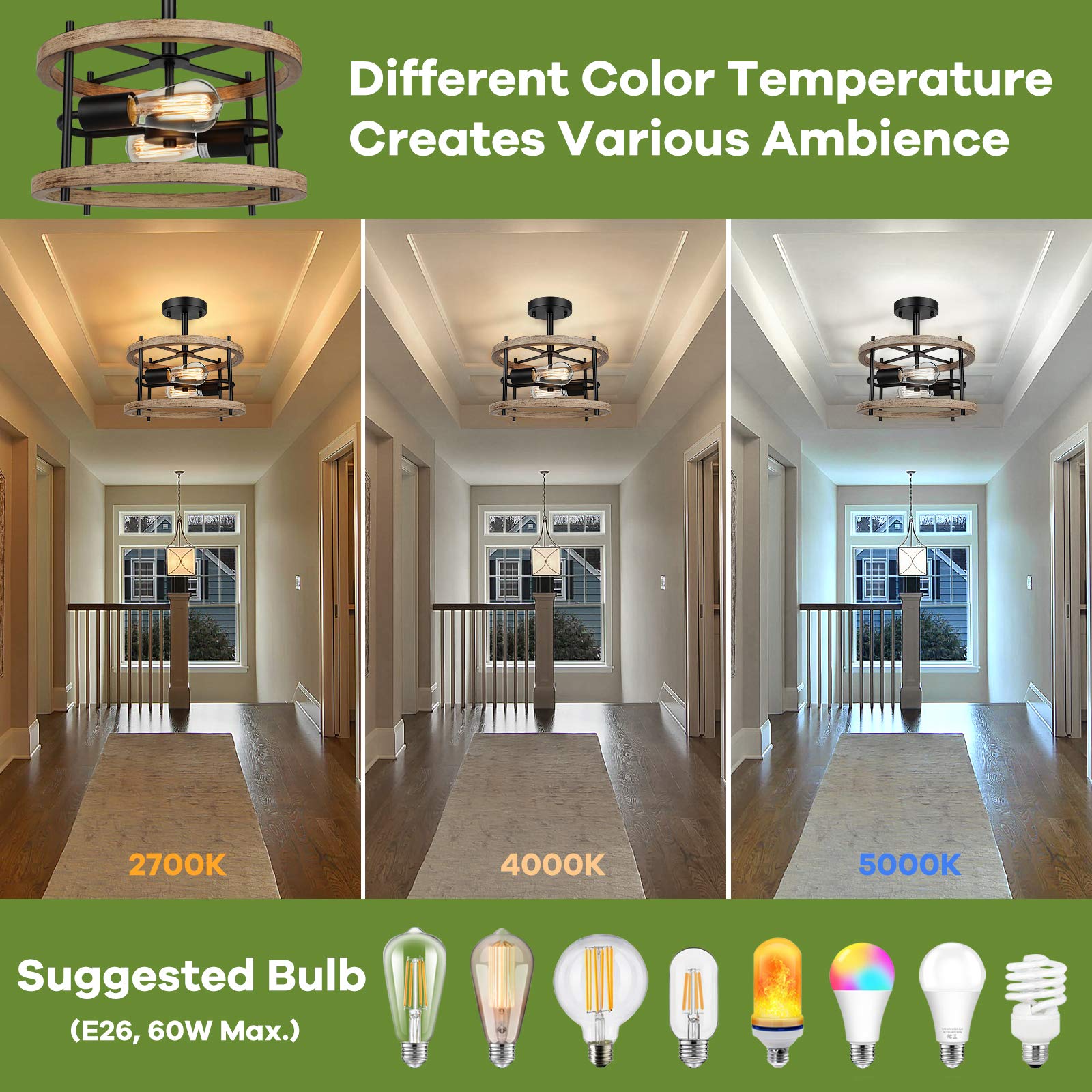 Exactly Easy to Install: This wood semi-flush mount ceiling light has no difficulties in getting it together, only 6 simple steps, clear instructions included in the package and pictures for the listing. (Warm tips: please turn off power before installation on your ceiling and read the manual carefully, we advise you contact professional electricians to operate for safety purpose).