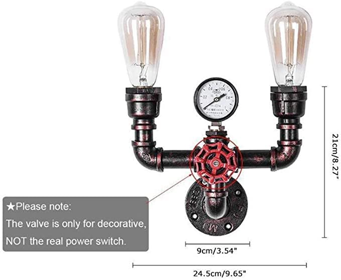 Made of metal material, resistant to fade, rust and corrosion, water pipe design create a wide range of highly emotional atmospheres. Hang this decorative wall lamp with E27 sockets wherever you wish to create a warmly lit, welcoming atmosphere. Grace your interior with this industrial steampunk wall sconce. It is made with solid metal and provides the functions of illumination and decoration. This wall light has a relatively good size, saving space and decorating needs, no dark areas. Simple structure and complete accessories make the installation to be very easy. Warm welcome to your guests and add a lighting décor, beautifully blends into different styles(antique, vintage, industrial, retro, steampunk), perfect lighting fixture for dining room, kitchen, living room, bedroom, hotel, restaurants, cafés, bars, clubs, offices, galleries, showrooms, etc.
