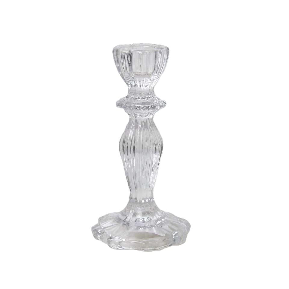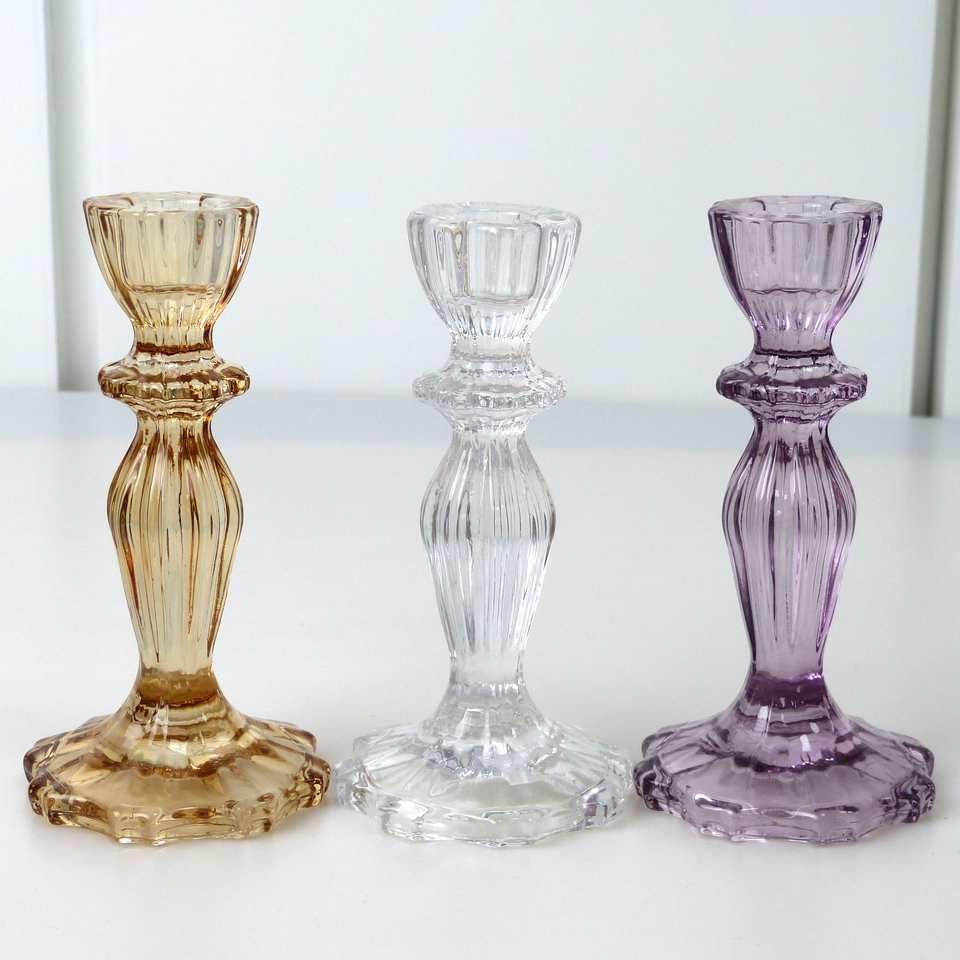 - Introducing our stunning clear glass candlesticks, perfect for adding a touch of elegance to any home or wedding decor. These versatile candlesticks are crafted from high-quality glass, with a timeless design that complements any style.