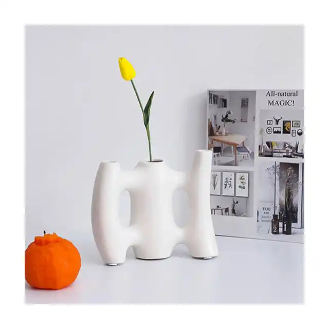 White Irregular Shape Ceramic Vase Porcelain fence Abstract flower Vase.