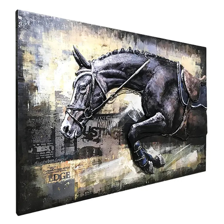 لوحة فنية جدارية ثلاثية الأبعاد على شكل حصان معدني لديكور المنزل.