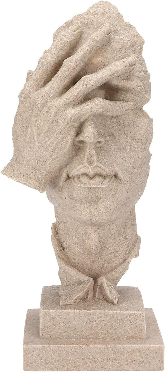 Abstract Thinker Figurine Sculptures: Nordic Art Crafts for Unique Office and Home Decor in Beige.