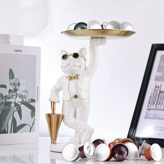White Bulldog Tray Key Holder Candy Holder, Modern Decor Resin Bulldog Tray Statue