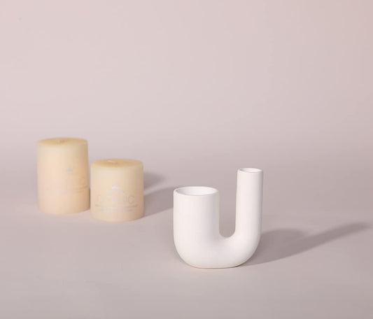 White Ceramic Candle Holder, Modern Aesthetics for Table Centerpiece and Fireplace Decor.
