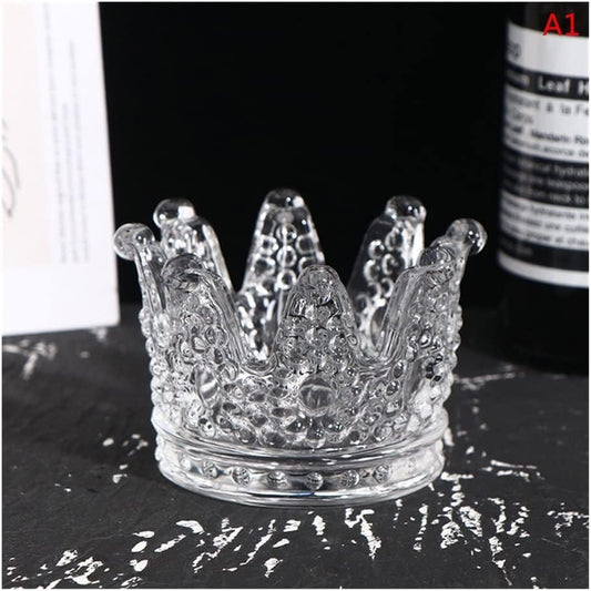 Crown Crystal Candle Holder, Elegant Decorative Glass Cup for Home Living Room Table.