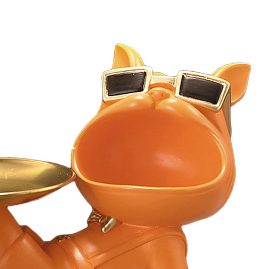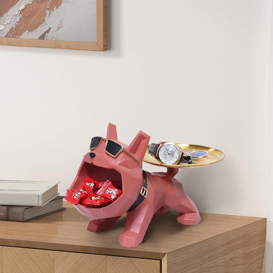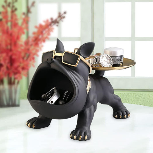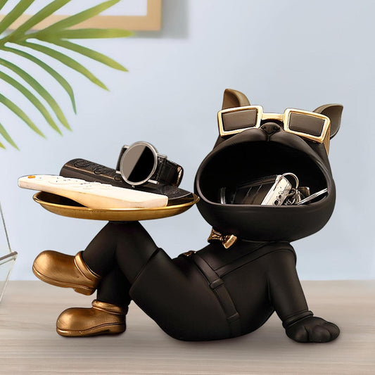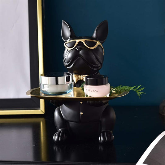 French Bulldog Sculpture with Stainless Steel Tray for Home Storage