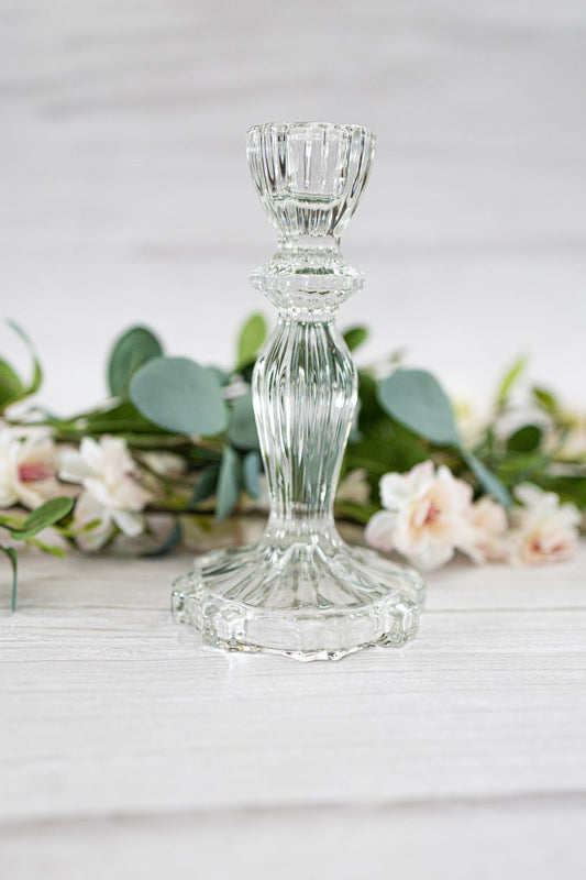 Glass Candlesticks vintage, Crystal Pressed Glass Candlesticks for Weddings and Home Decor.