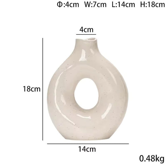 New Design Nordic white decorative round circle pottery Minimalism ceramic vase donuts