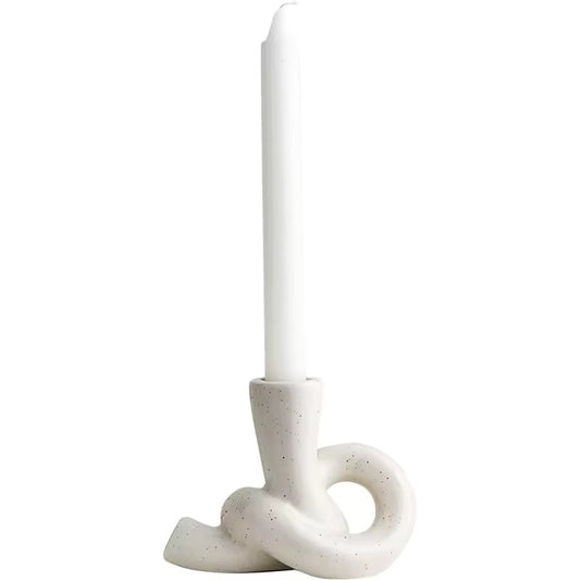 Table Decorative Taper Candle Holder Handled White Ceramic Candlestick Holder