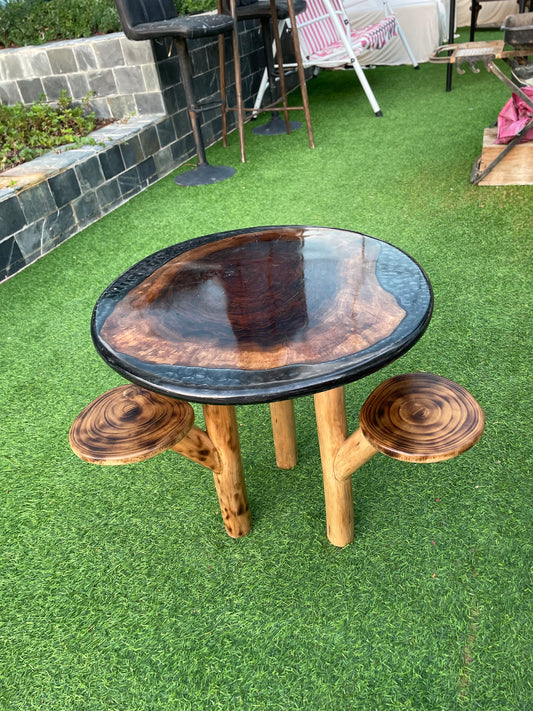 Premium Live Edge Solid Wood Dining Table Top Enhanced by Epoxy Resin black river Finish.