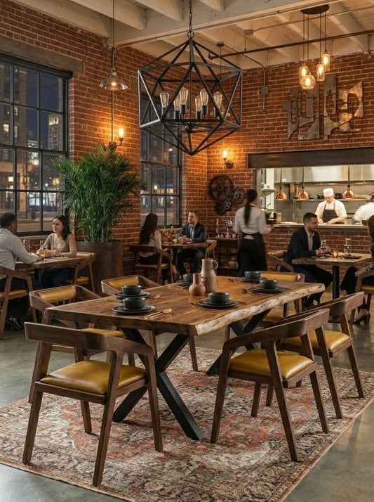 Limited time sale on the Large Live Edge Natural Wood Dining Table - Walnut Wood with PU Finish, Black Metal Legs - Ideal for Home or Restaurant