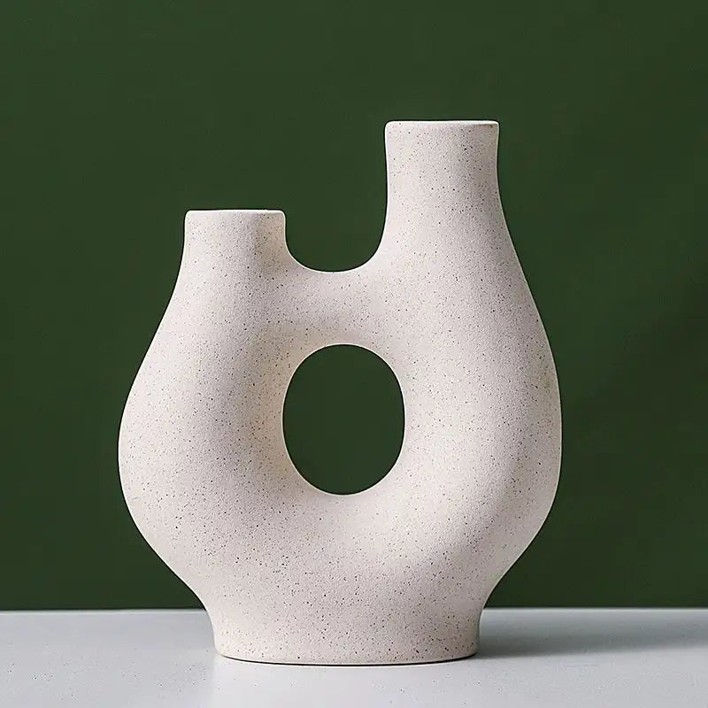 Artistic Hollow Circular Shape: Crafted with a distinctive hollowed-out middle, this ceramic vase is not just a vessel for flowers but also a captivating artwork. Perfect for adorning bookshelves, dining tables, TV cabinets, and more.